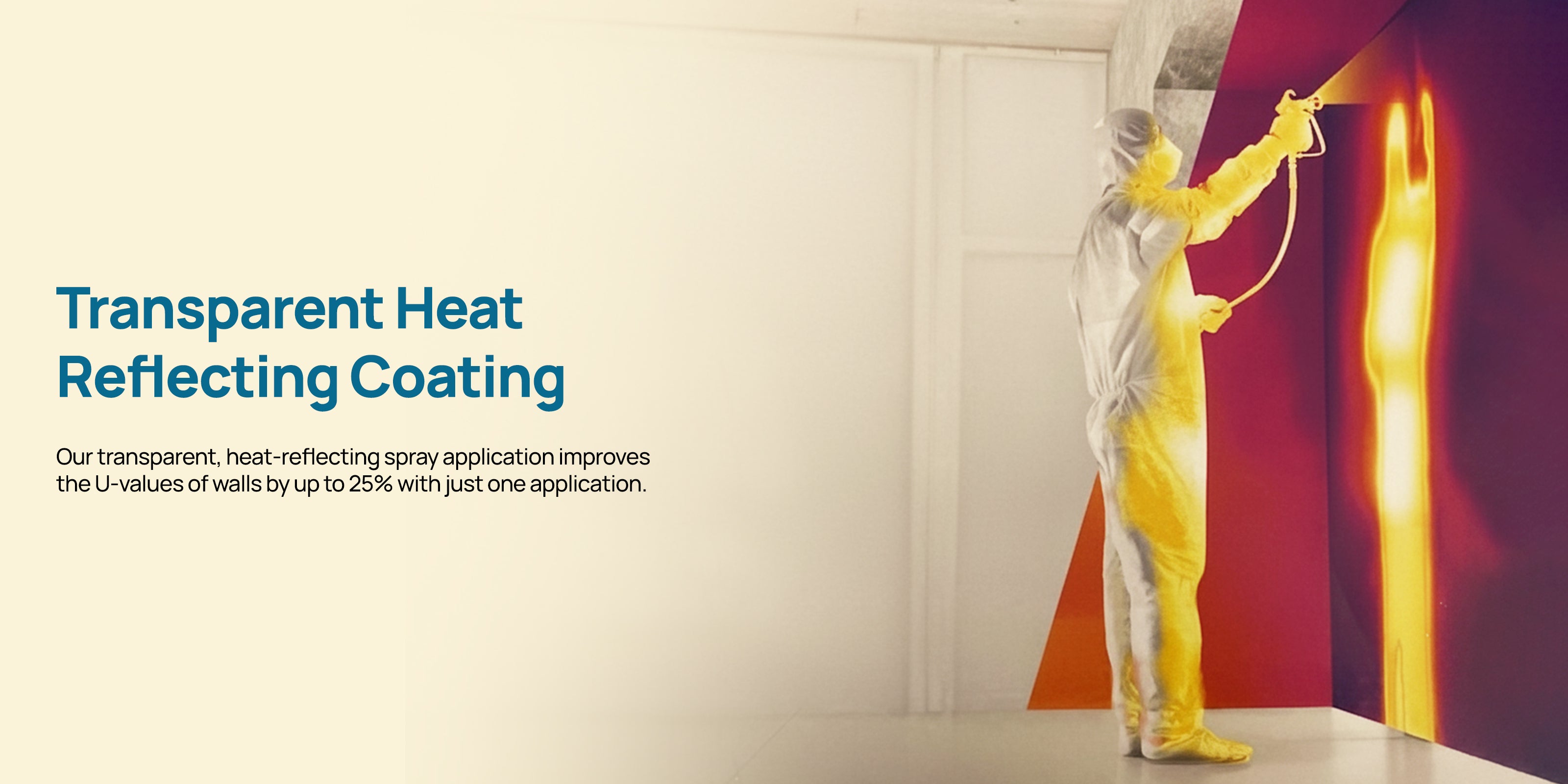 Our transparent,heat-reflecting spray application improves the U-values of walls by up to 25%with just one application.